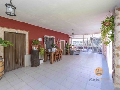 En el exterior, la finca destaca por sus completas instalaciones: tres grandes porches, un amplio salón acristalado perfecto para disfrutar durante todo el año, piscina desmontable, zona de gallinero de gran capacidad y perrera espaciosa.